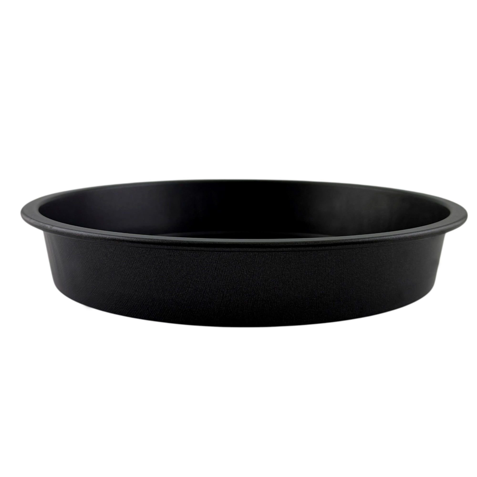 mpress your family and friends with bakery-worthy cakes in this Nonstick Steel 9" Round Cake Pan. The Round Cake Pan features a dark, durable nonstick finish allowing for even heat absorption that ensures a golden-brown result with every use. Crafted from quality nonstick steel, the Nonstick Round Cake Pan is multi-functional, not only great for cakes, but ideal for making savory deep-dish pizza, breads, cakes and more! The Nonstick Round Cake Pan is coated with a durable nonstick finish which allows for quick release of food and easy cleanup. For best results hand wash in warm, soapy water and dry thoroughly after each use. Dimensions are 9" (22.86 cm) in diameter x 1.5" (3.8 cm).