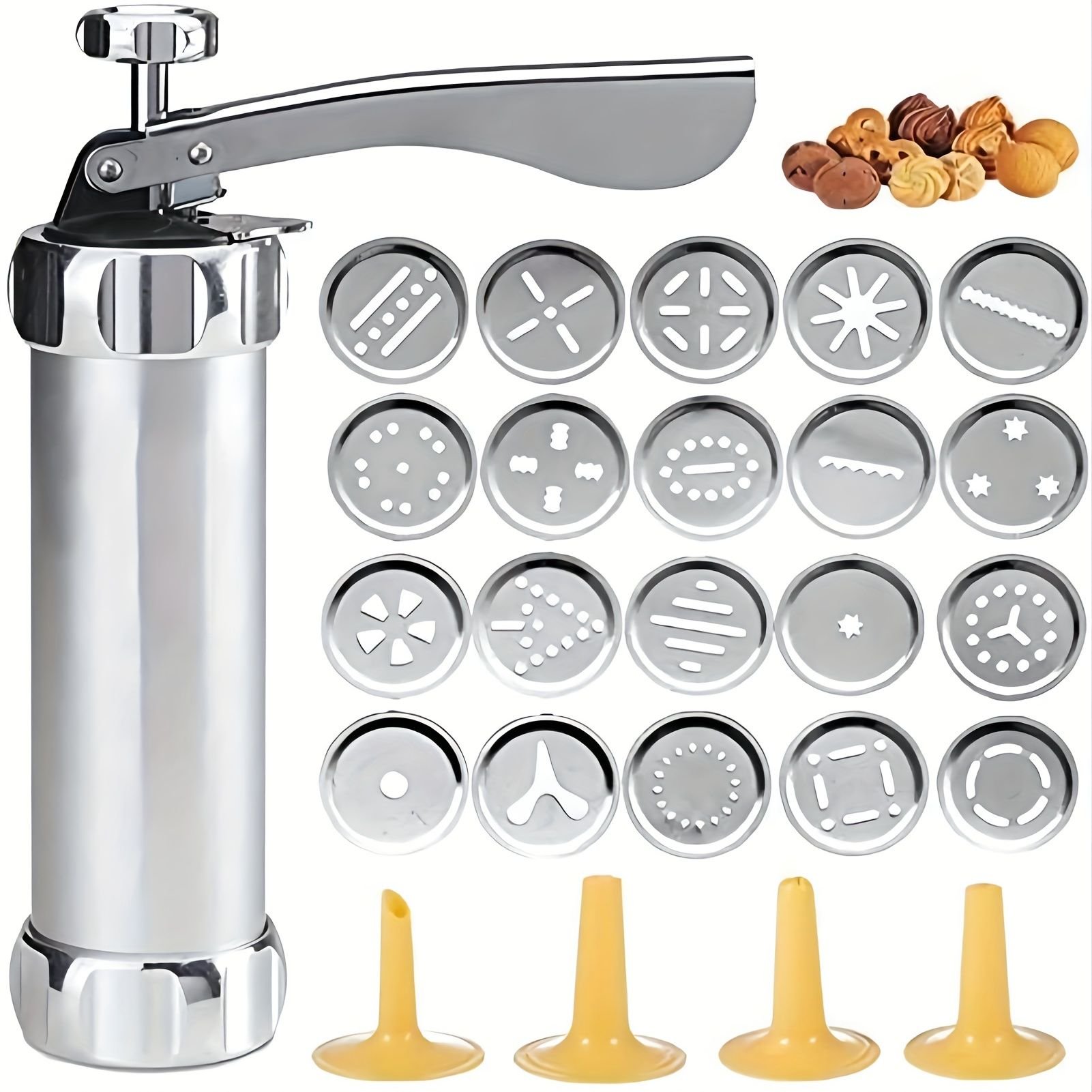 1 Set; Cookie Press Gun Kit; Includes 20 Cookie Dies And 4 Stainless Steel Nozzle For DIY Biscuit Maker And Decoration Christmas Cookie Making; Kitche 1 Set; Cookie Press Gun Kit; Includes 20 Cookie Dies And 4 Stainless Steel Nozzle For DIY Biscuit Maker And Decoration Christmas Cookie Making; Kitche 1 Set; Cookie Press Gun Kit; Includes 20 Cookie Dies And 4 Stainless Steel Nozzle For DIY Biscuit Maker And Decoration Christmas Cookie Making; Kitche