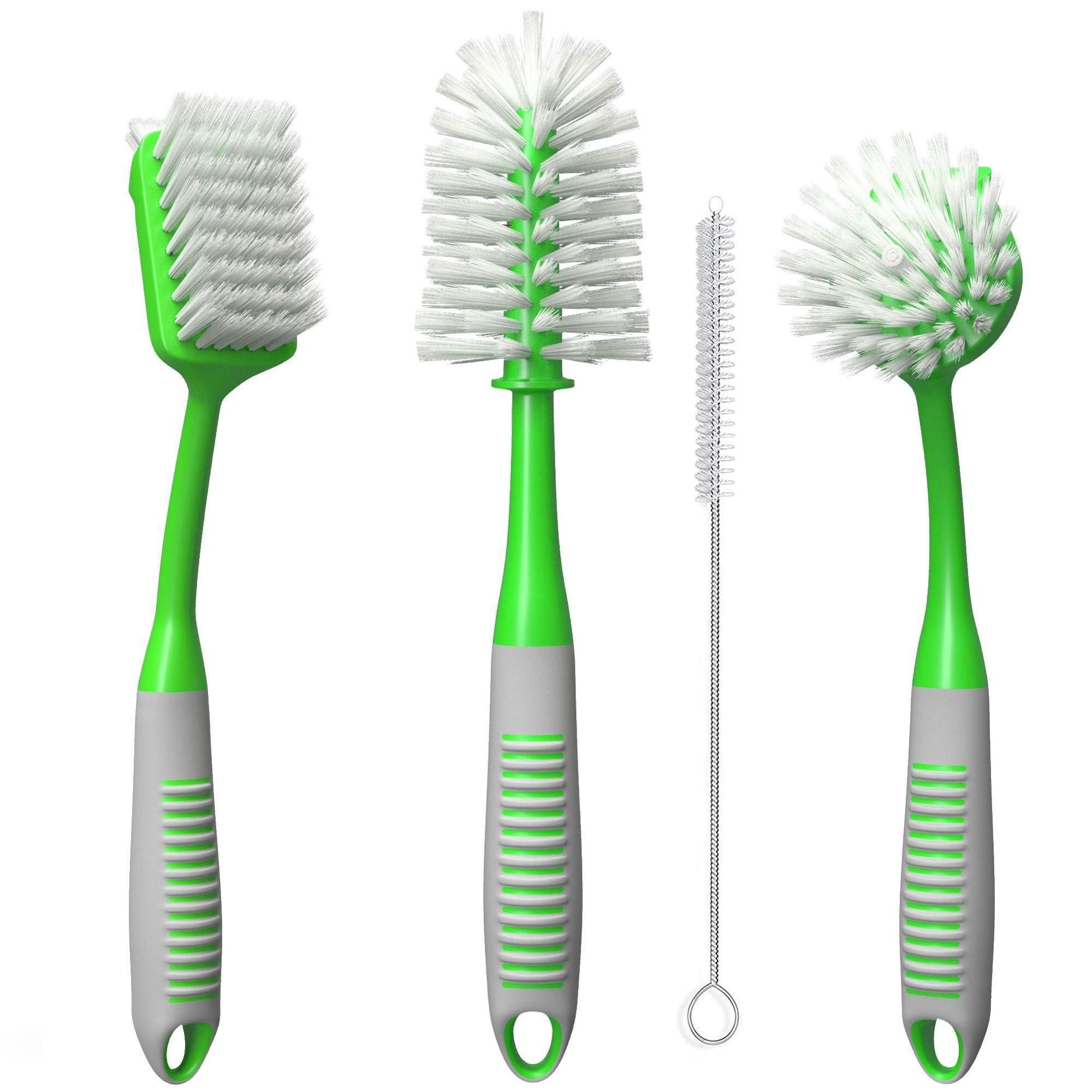 Home > Dish Brush Set of 4 with Bottle Water Brush Scrub Brush and Scrubber Brush Green Brushes for Kitchen Ergonomic Non Slip Long Handle for Cleaning Clean