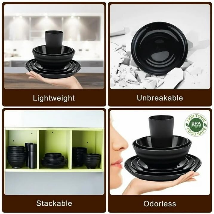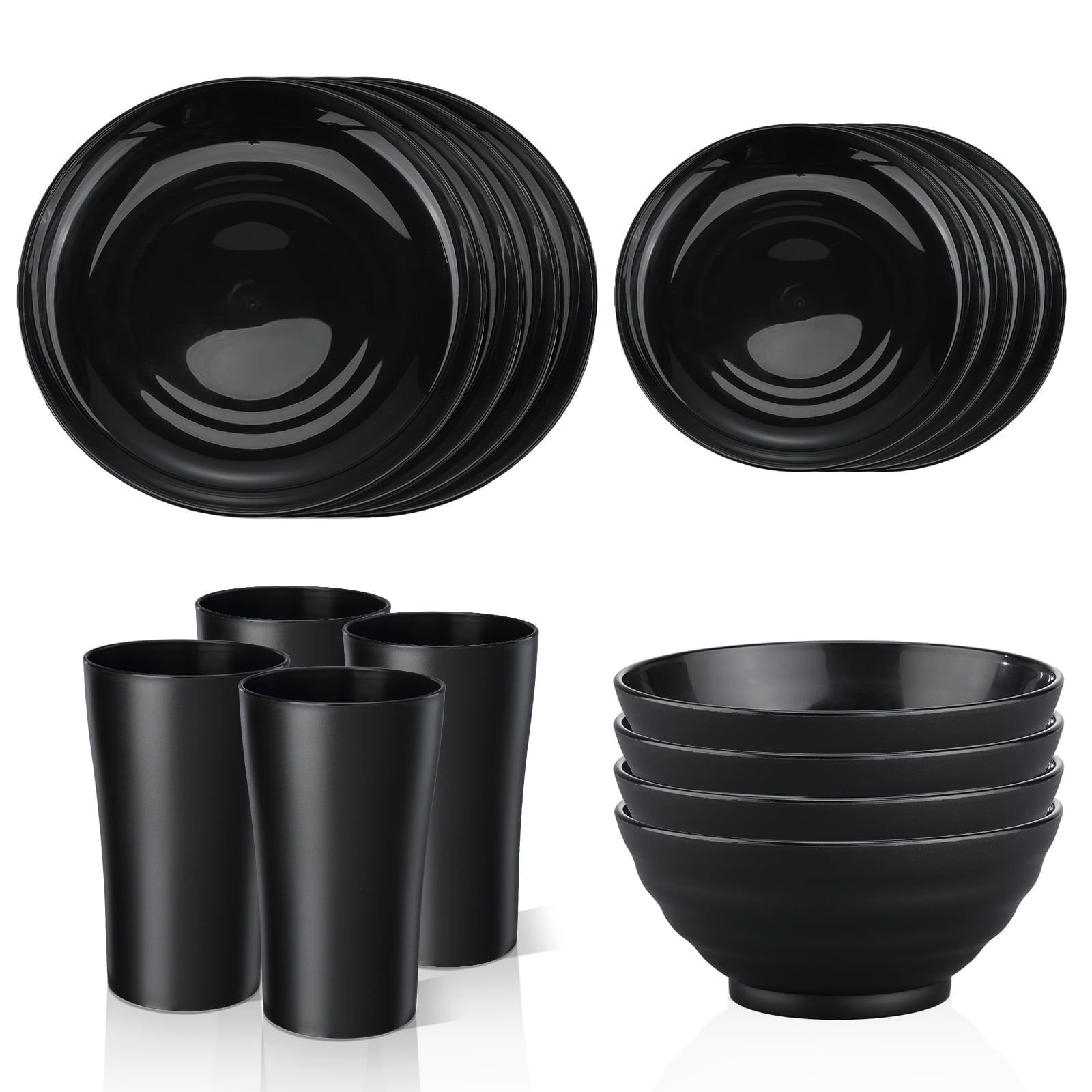 Black Dinnerware Set for 4, 16 Pack Plastic BPA-Free Dinner Plates, Salad Plates, Cereal Bowls, Cups, Unbreakable Plates and Bowls Sets Black Dinnerware Set for 4, 16 Pack Plastic BPA-Free Dinner Plates, Salad Plates, Cereal Bowls, Cups, Unbreakable Plates and Bowls Sets Black Dinnerware Set for 4, 16 Pack Plastic BPA-Free Dinner Plates, Salad Plates, Cereal Bowls, Cups, Unbreakable Plates and Bowls Sets