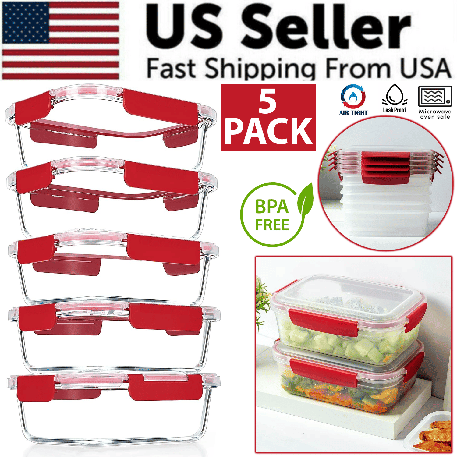 5 Pack Stackable Food Storage Containers Airtight & Leakproof Set Snap Lock Lids