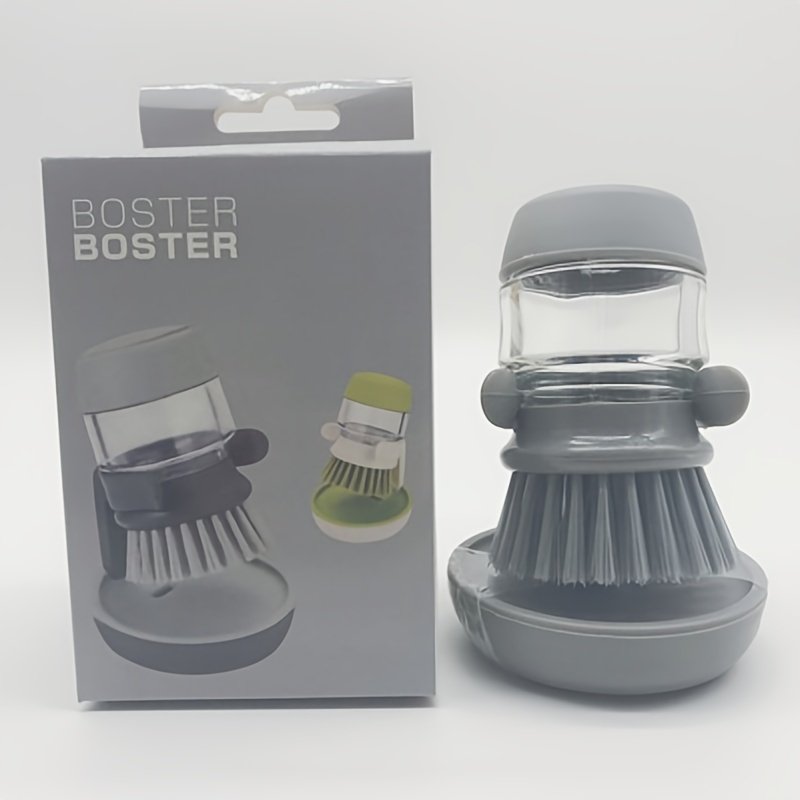 1pc Soap Dispensing Palm Brush With Holder; Soap Dispenser Scrub Brush; With Holder Storage Stand Set; Green; Grey