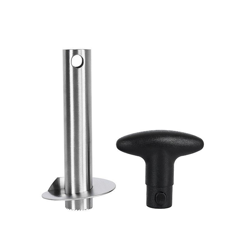 Ergonomic handle to effortlessly twists or push corer through the pineapple; etc.