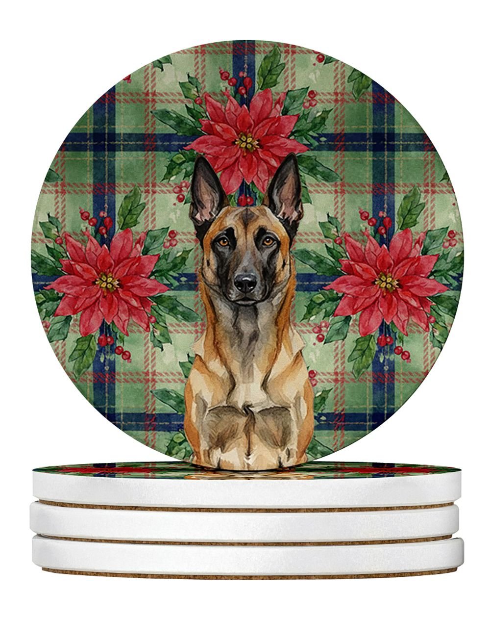 Home > Belgian Malinois Christmas PoinsettIas Large Sandstone Coasters Pack of 4 Absorbent Round Coasters Decor Gifts for Men or Women, 4 in, Multicolor